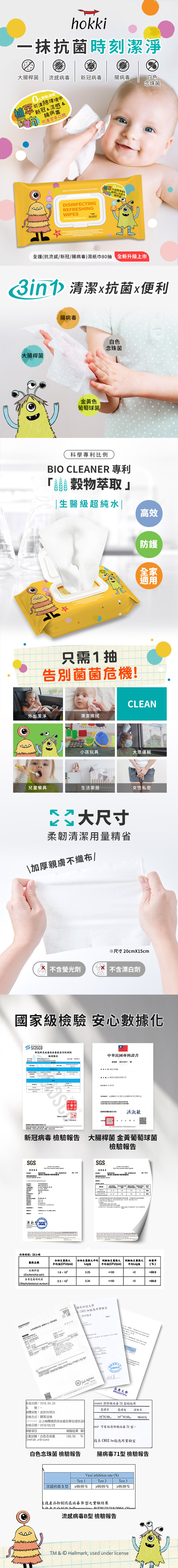 小怪獸全護抗病毒抗菌濕紙巾 1組 (8抽x8包)