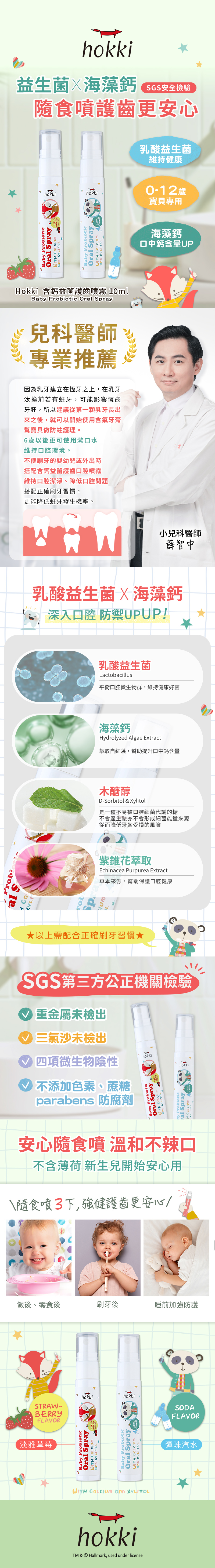 Hokki 含鈣益菌護齒噴霧 10ml (任選一款)+Hokki 兒童木醣醇防蛀液態牙膏 100ml (任選一款)